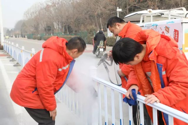 洗車工打開蒸汽噴頭,強勁的蒸汽會噴出來,洗車工手持噴槍,噴出的高壓熱蒸汽有獨特的熱分解功能,能迅速軟化站牌、護欄上的泥沙、鳥糞、蟲尸、蟲膠和污漬,并通過蒸汽快速將其去除。經(jīng)過一個小時的高溫清洗過后,一排排嶄新的公共設施映入了大家的眼簾,同時公共設施的漆面達到了煥然一新的效果。